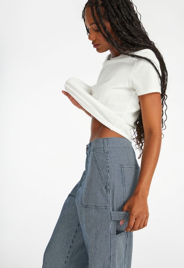 Material : 99% Cotton, 1% Elastane Fit : Non-Stretch Denim Approx. Front Rise : 11.75 Approx. Inseam : 30.0 Approx. Leg Opening : 18.0 Fabrication : Dark Wash Pockets : Cargo leg pockets, Hip and back pockets Closure : Zipper/Button front closure Care : Machine wash cold. Imported