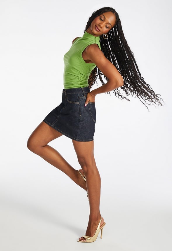 Material : 88% Cotton, 12% Rayon Fit : Non-Stretch Denim Length : 15.5 Fabrication : Dark Wash Pockets : 5-Pocket Design Closure : Zipper/Button front closure Care : Machine wash cold. Imported