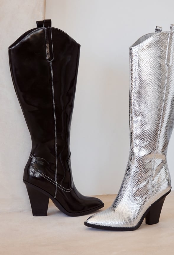Material : Faux-Leather Outside Heel Height : 3.75 Closure : Functional Inside Zipper Shaft Height : 15.75 Imported
