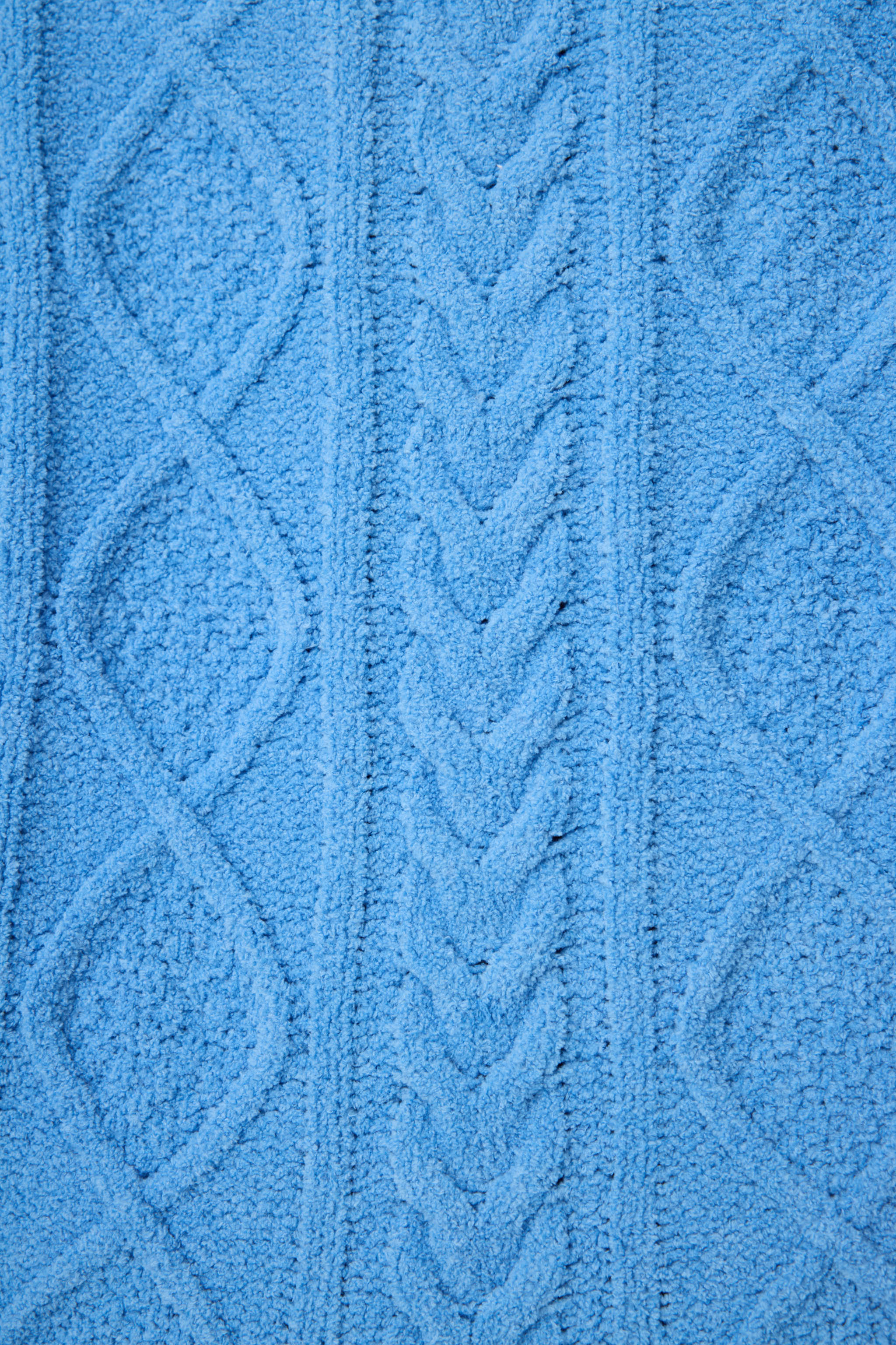 The ultimate in stay-home softness. this chenille cable knit pajama set pairs a relaxed V-neck pullover with matching drawstring pants. The bright blue hue adds a cheerful pop to cozy days and nights.