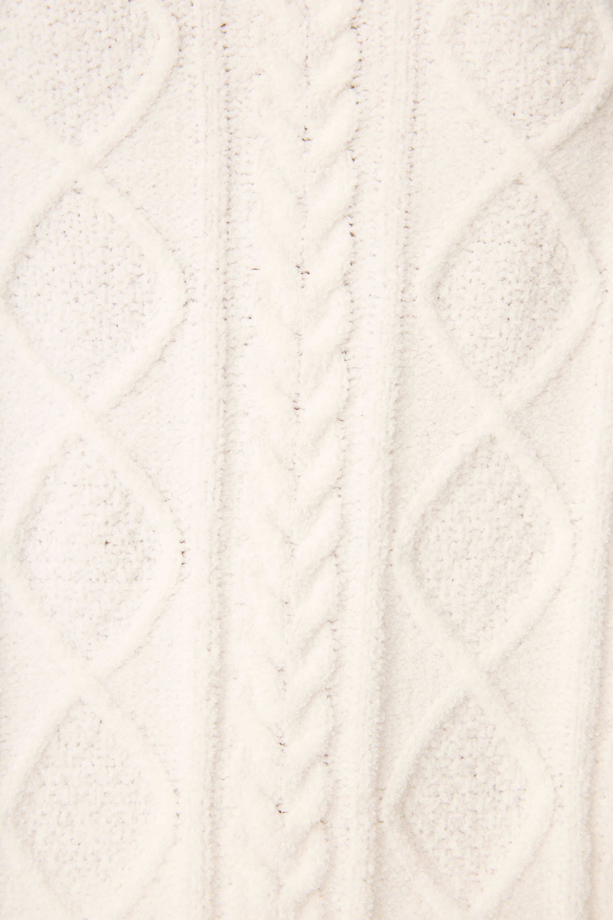 Dreamy-soft and lounge-ready. this chenille V-neck top was made for the kind of days when you cancel plans just to stay in. The creamy off-white knit has a classic cable pattern and a plush. velvety touch that’s pure bliss. With its relaxed fit and long sleeves. it’s your go-to for movie marathons. breakfast in bed. or just curling up with a good book.