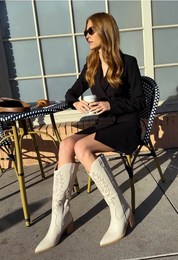 Material : Faux Leather Outside Heel Height : 3 Shaft Height : 14.25 Closure : Functional Side Zipper Imported