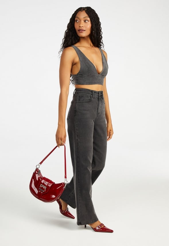 Material : 99% Cotton, 1% Spandex Length : 15.0 Strap : Adjustable straps Closure : Hook and eye closure Fabrication : Used Black Wash Care : Machine wash. Please refer to care instruction label inside garment for further details. Imported