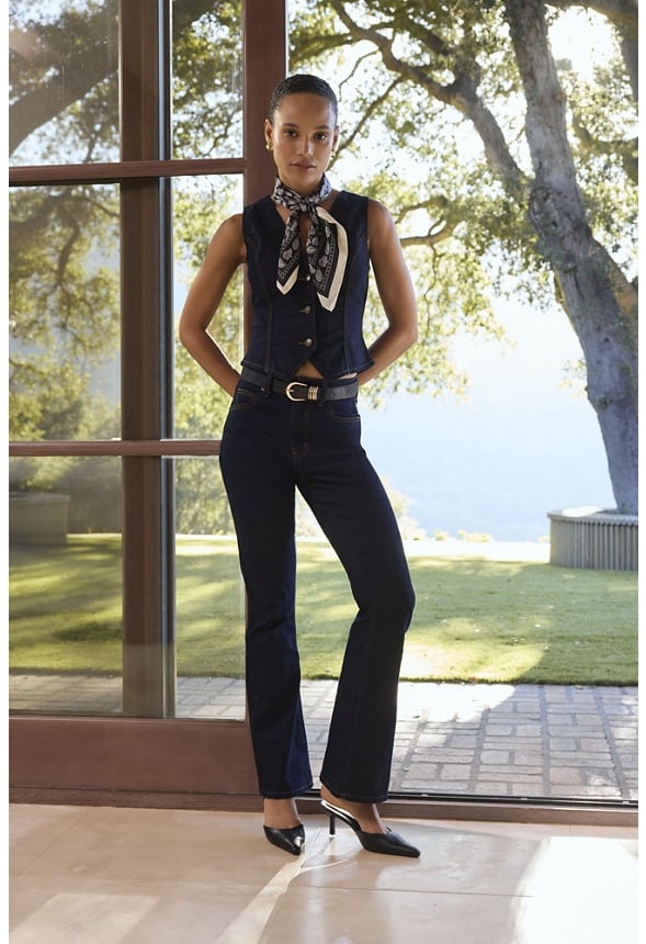 Material : 56% Cotton, 29% Polyester, 14% Rayon, 1% Other Fiber Length : 21.0 Fabrication : Dark Wash Closure : Button front closure Care : Machine wash. Please refer to care instruction label inside garment for further details. Imported