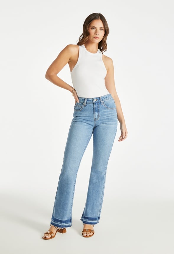 Raw hem Material : 99% Cotton, 1% Elastane Approx. Front Rise : 10.75 Approx. Inseam : 31.0 Approx. Leg Opening : 22.0 Fabrication : Dark Wash Pockets : 5-Pocket Design Closure : Button front, Zipper Care : Machine wash. Please refer to care instruction label inside garment for further details. Imported