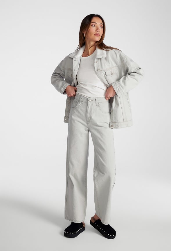 5-pocket design Light Gray Wash Material : 90% Cotton, 10% Polyester Approx. Front Rise : 11.75 Approx. Inseam : 31.0 Approx. Leg Opening : 21.0 Closure : Zipper button front closure Care : Machine wash. Please refer to care instruction label inside garment for further details. Imported