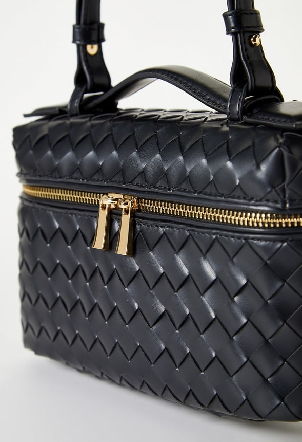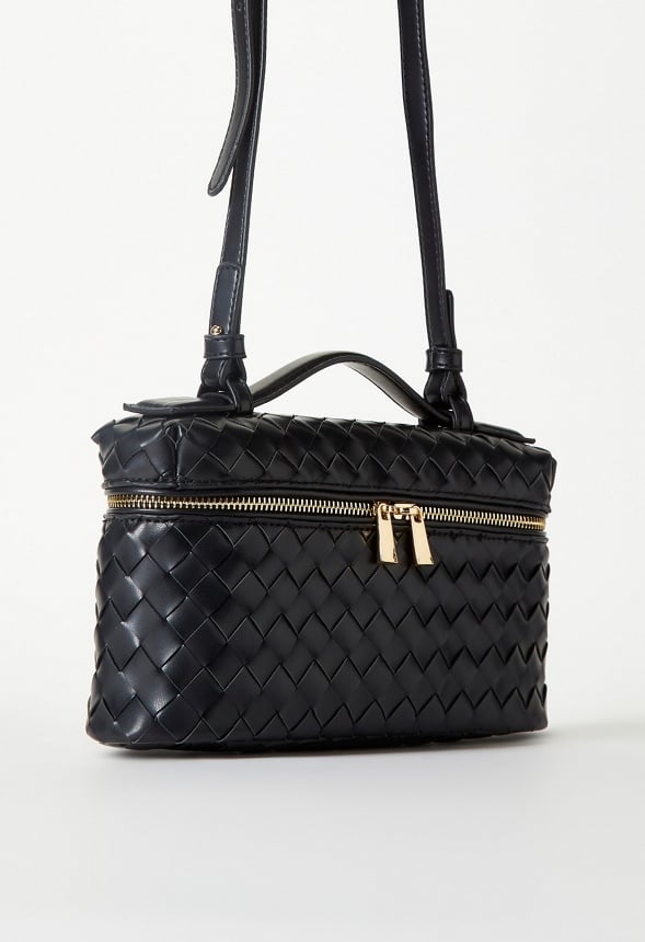 Material : Faux Leather Dimensions : 9.06 L x 2.36 W x 5.51 H Strap : 23.62 Drop : 1.38 Pockets : 1 interior pocket Closure : Zipper Hardware : Light Gold Imported