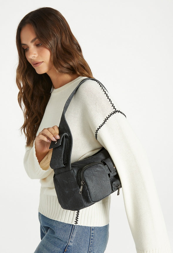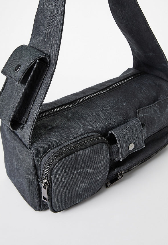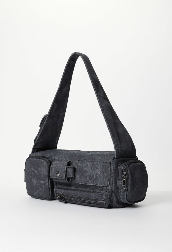 Material : Cotton Dimensions : 11.81 L x 3.94 W x 4.72 H Drop : 11.02 Pockets : 1 interior pocket, 1 interior zip, 1 exterior zip Hardware : Gunmetal Closure : Zipper Imported