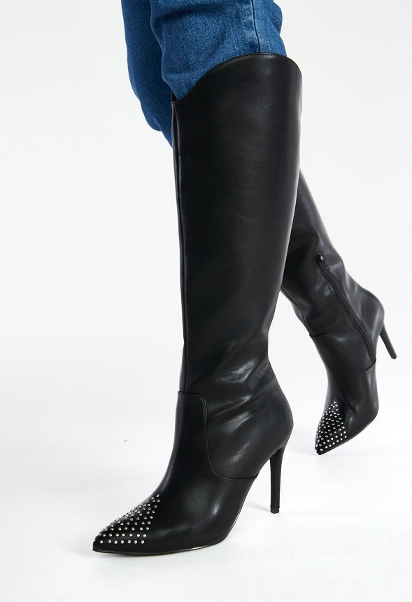 Material : Faux-Leather Outside Heel Height : 4 Closure : Functional Side Zipper Shaft Height : 15.25 Imported