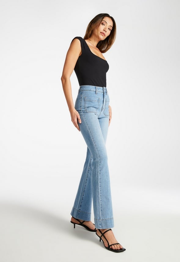 Patch Pocket Flare Leg Jeans
