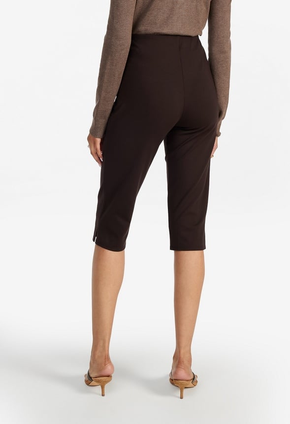 Side zipper Material : 67% Rayon, 26% Nylon, 7% Elastane Approx. Front Rise : 11.5 Approx. Inseam : 17.0 Approx. Leg Opening : 14.5 Care : Machine wash. Please refer to care instruction label inside garment for further details. Imported