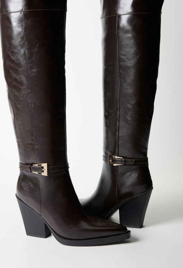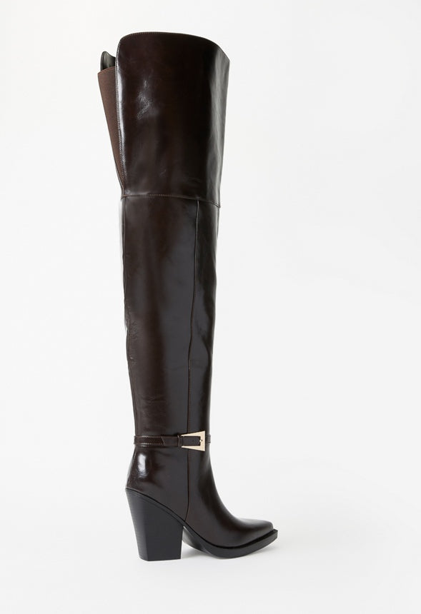 Material : Faux Leather Outside Heel Height : 4.0 Shaft Height : 24.0 Platform Height : 0.5 Closure : Functional Inside Zipper Imported
