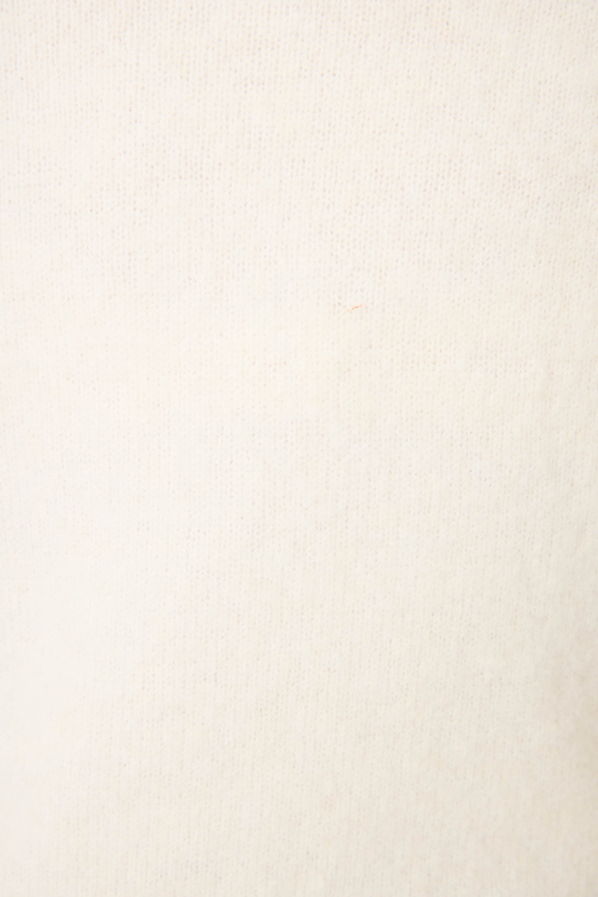 Top off your holiday lounging with this fuzzy ivory sweater. stamped with a pink bow graphic at the shoulder. The crewneck design. finished with pink cuff trim. pairs perfectly with flannel bottoms for cozy nights or with jeans for festive outings.